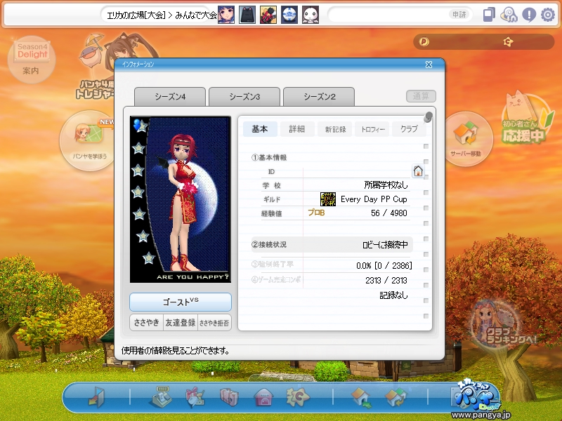 たまにはパンヤの事でも・・・ 1年間で1000万PP稼ぐには どうしたらいいのか ふと考えてみた とりあえず 一試合で10000PP稼いでみるとする これ自体は そんなに難しくはない パンマスとマカロンとアズテック使えば PP+BPで4200PP 稼げばいいわけで BPで1000PPは確実として 残り3200PPを試合内で稼げばいい IC周れば チップしなくてもいけるので これもクリア 30分大会でいけば 時間も少なくて済む そして ここからが本題